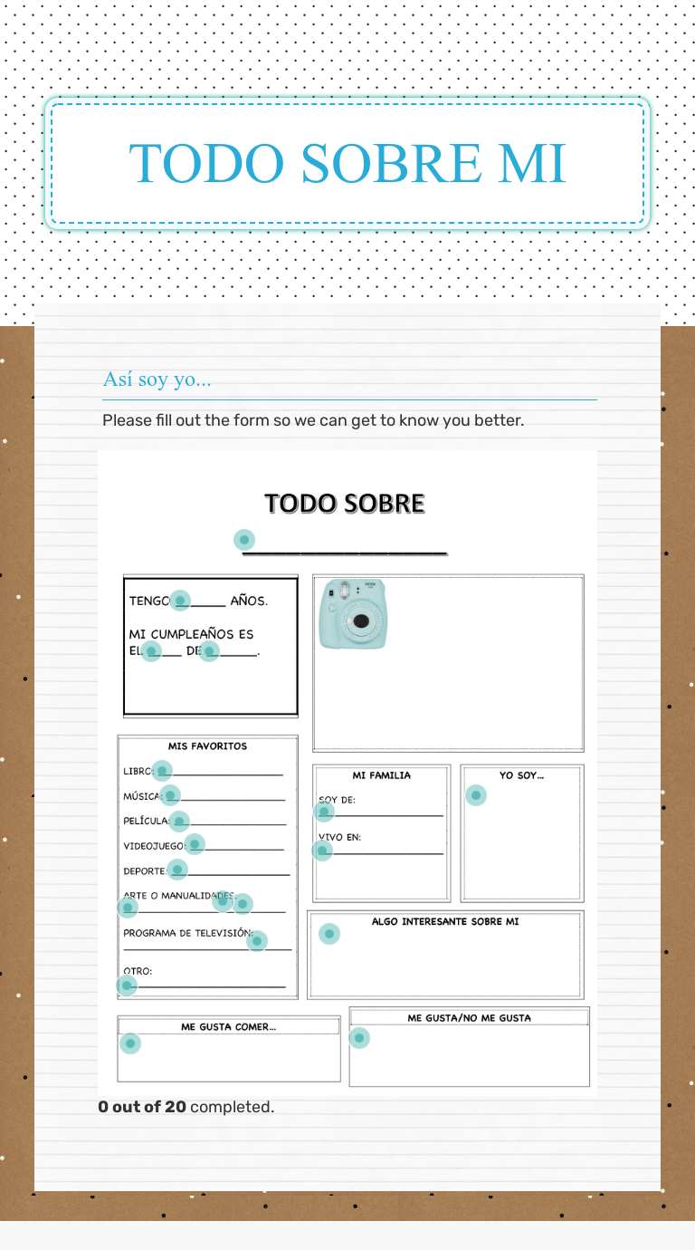 Also, you can practice saying the questions and answers to be ready for the next step of the todo sobre mi process/project todo sobre mi worksheet. With and without an english key.